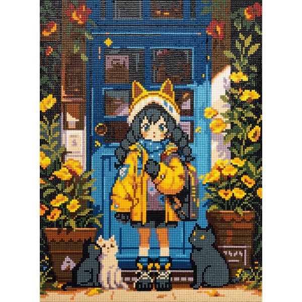 Кристальная (алмазная) мозаика "ФРЕЯ" ALPD-329 на подрамнике "Девочка с котиками 30 х 40 см