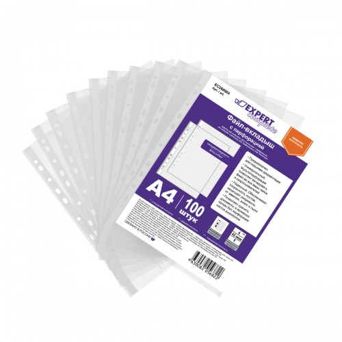Файлы с перфорацией Expert Complete толщиной 42 мк предназначены для хранения и защиты документов. Универсальная перфорация подходит для подшивки во все виды папок. Обладают антистатическим эффектом . Изготовлены из полипропилена. В упаковке 100 шт.