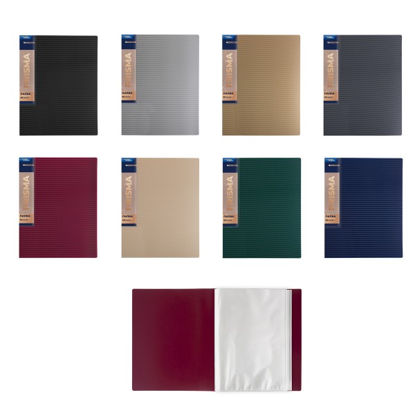 Папка с вкладышами на 40 листов Expert Complete Premier PRISMA формата А4 - стильный аксессуар для учебы и работы. Папка выполнена из полипропилена 0,7мм с фактурной поверхностью. Тиснение PRISMA создает эффект 3D изображения.. Удобна для демонстрации документов, не требует их предварительной перфорации для подшивания в папку. Оснащена торцевым карманом с цветным вкладышем для подписи. В папках с артикулом, содержащим NEW, торцевой карман укороченный. Такой карман позволяет демонстрировать цвет и текстуру папки, стоящей на полке, облегчает классификацию папок. Ширина корешка - 20 мм. Допустимое отклонение толщины пластика: ±10\%