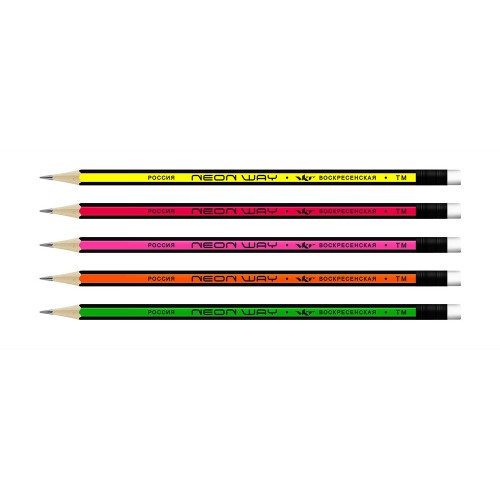 Карандаш графитный с ластиком заточенный ТМ «ВКФ» "Neon Way" арт. NW01 с градацией твердости ТМ.