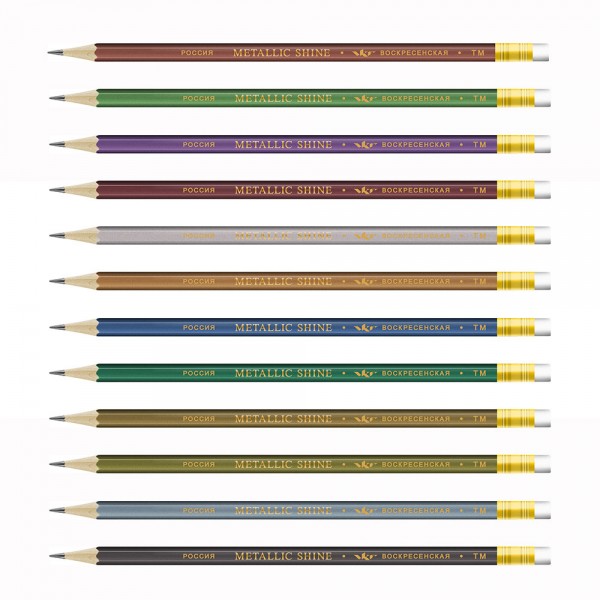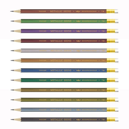 Карандаш графитный с ластиком заточенный ТМ «ВКФ» "Metallic shine" арт. MS04-12Д с градацией твердости ТМ[НВ]. Изготовлен из сырья и материалов природного происхождения и качественной химически необработанной древесины мелколистной липы, выращенной в экологически чистых районах России. Не токсичен. Проклейка стержня осуществлена по специальной технологии: - увеличивает прочность и надежность заклейки стержня в карандаше; - предохраняет стержень от повреждений при падении, ударе и намокании; - не изменяет цвет, упругость, прочность и чиночные свойства древесины в местах склейки. Корпусы карандашей серии METALLIC SHINE покрыты краской металлик 12 цветовых оттенков. Стильный дизайн и цвет создают удивительный по красоте карандаш. Выпускаются как с ластиком, так и без. Форма корпуса карандаша: шестигранный Длина карандаша: 190 мм Диаметр сечения корпуса: 7 мм Диаметр стержня: 2.2 мм