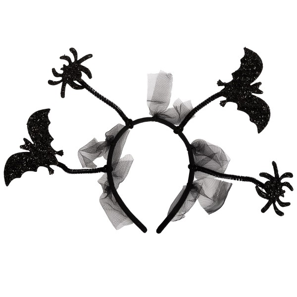 Ободок "Пауки и летучие мыши" торговой марки "BOOMZEE" арт. PBZ-18 - универсальный аксессуар для маскарада или тематической вечеринки "Хэллоуин". Может быть использован как часть карнавального костюма или быть самостоятельным маскарадным аксессуаром.