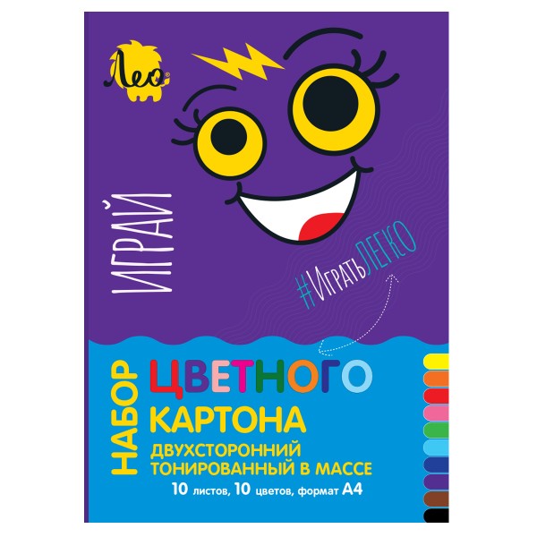 Лео" "Играй" Картон цветной тонированный в массе LPCB-05 220 г/м2 A4 21 х 29.7 см 10 л. 10 цв. .
