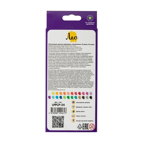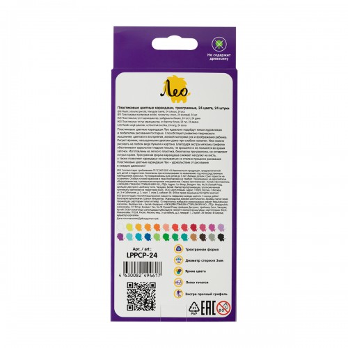 Лео" "Играй" Карандаши цветные пластиковые трехгранные LPPCP-24 заточенный 24 цв. .