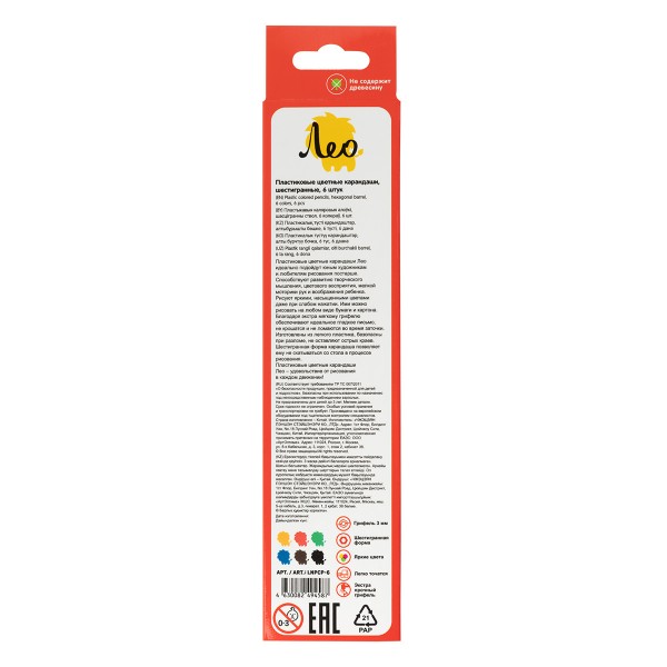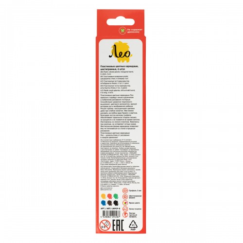 Лео" "Учись" Карандаши цветные пластиковые LNPCP-06 заточенный 6 цв. .