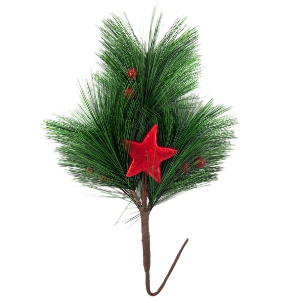 Декоративная веточка "Blumentag" VDD-119 используются во флористике, в композициях из искусственных цветов, в изготовлении новогодних венков, в топиариях, в декоре интерьера, оформлении подарков. Она прекрасно подойдет для создания зимней поделки. Основание из гибкой проволоки искусственной веточки обернуто флористической лентой, на веточке расположены искусственная хвоя и красная звезда, выполненная из дерева. Длина 27 ± 1 см