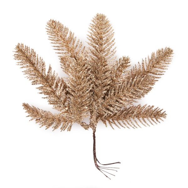 Декоративная веточка "Blumentag" VDD-138 используются во флористике, в композициях из искусственных цветов, в изготовлении новогодних венков, в топиариях, в декоре интерьера, оформлении подарков. Она прекрасно подойдет для создания осенней или зимней поделки. Основание из гибкой проволоки искусственной веточки обернуто флористической лентой, искусственная хвоя покрыта золотистым оттенком глиттера. Осыпание глитера не является браком. Длина 24 ± 1 см