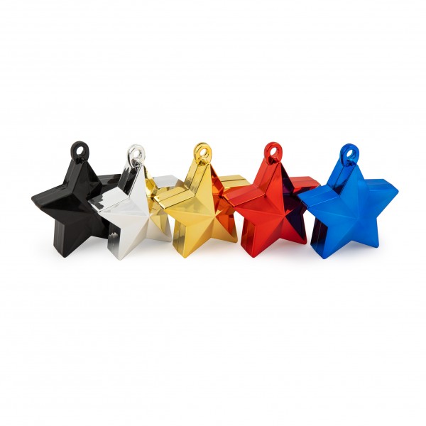 Груз в форме звезды яркого цвета обеспечит надутым шарам устойчивость. Подойдет для многоразового использования. Все, что необходимо, это надуть шарики, привязать их к ленточке, а ленточку вдеть в кольцо в самой звезде.