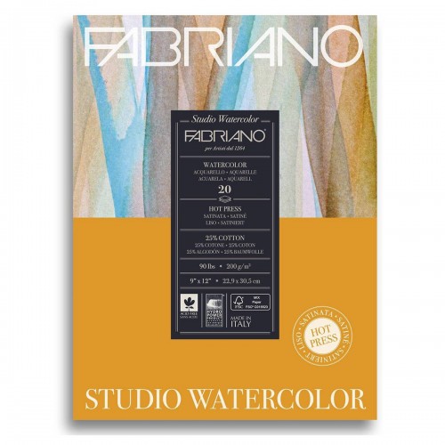 Fabriano" Альбом для акварели "Watercolour Studio" 25\% хлопок, 75\% целлюлоза 300 г/м2 A4+ 30.5 х 22.9 см склейка с одной стороны 12 л. 19123002 сатиновое зерно