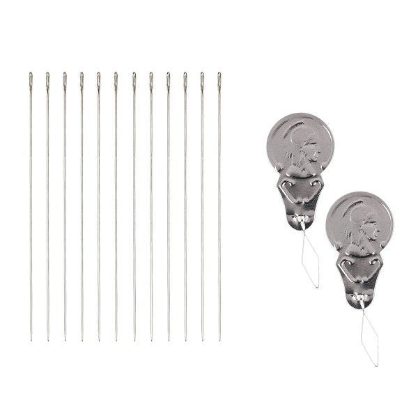 В набор входят 12 игл и 2 нитковдевателя.