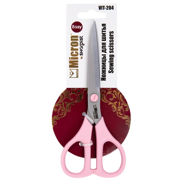 Ножницы "Micron by Sharpist" Easy VIT-204 для шитья на подложке с европодвесом 165 мм Pink