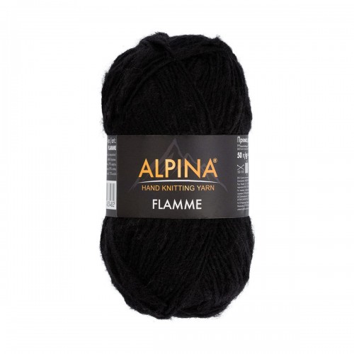 Пряжа ALPINA "FLAMME" 59\% хлопок, 29\% шерсть, 12\% акрил 10 шт. х 50 г 90 м ± 5 м №02 черный