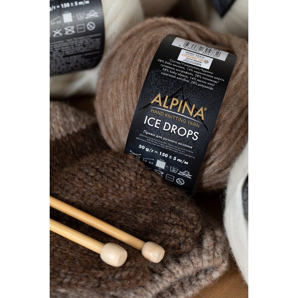 Пряжа ALPINA "ICE DROPS" идеально подходит для вязания одежды и аксессуаров /платки, свитера, жакеты и др./ с простыми и сложными узорами.