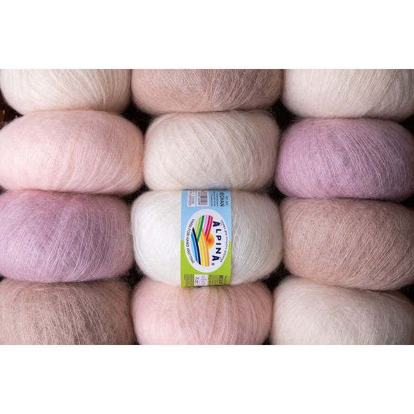 Тонкая и пушистая пряжа из шерсти ангорских козлят. Кидмохер придает нити мягкость и шелковистость, а наличие нейлона в составе добавляет износостойкости. Нить обладает исключительной упругостью и прочностью.
