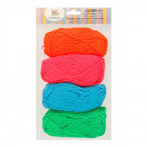 Пряжа "Hobbius" Simple 100\% акрил 4 х 25 г 66 м ± 3 м №02 оранжевый-св.розовый-голубой-зеленый