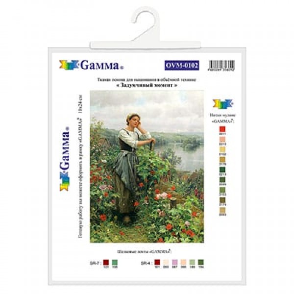 В комплектацию входит: ткань-габардин с рисунком и таблицей артикулов шелковых лент "GAMMA" и ниток мулине "GAMMA", рекомендуемых для вышивания, инструкция с описанием стежков и швов.