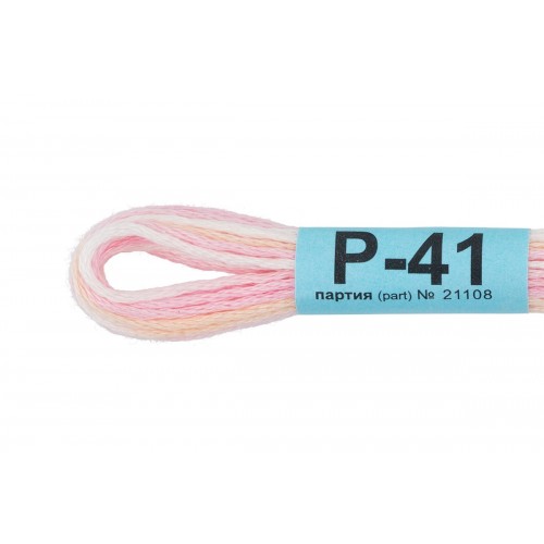 Нитки для вышивания "Gamma" мулине меланж 100\% хлопок 12 x 8 м Р-41 бл.роз-молочн-персиковый