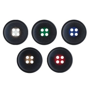 Пластиковая пуговица костюмная ТМ "Gamma", артикул: DX 0029 круглая на четыре прокола, диаметром 15 мм. Середина выполнена в цвете.