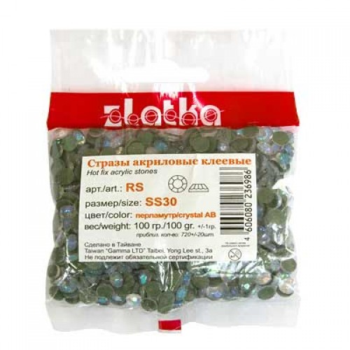 Страз клеевой "Zlatka" RS SS30 6 - 6.5 мм акрил 100 г в пакете с еврослотом черный(jet)
