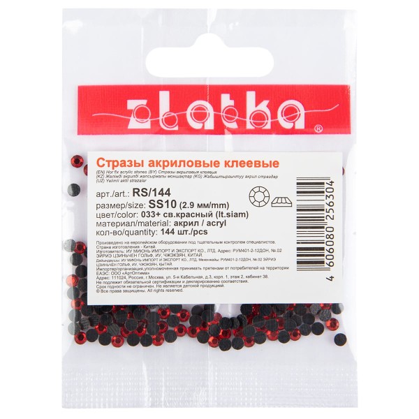 Страз клеевой "Zlatka" RS/144 SS10 2.7 - 2.9 мм акрил 1 x 144 шт в пакете с еврослотом 017 т.голубой (capri blue)