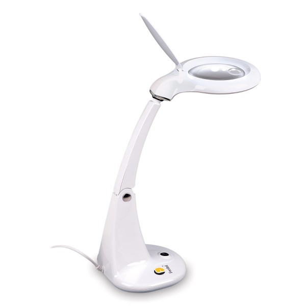 Лупа с подсветкой отлично используется для занятия любым видом творчества за столом. Она устанавливается на устойчивую утяжеленную подставку, а направление света и наклон линзы легко регулируются благодаря подвижному кронштейну. Лупа с подсветкой может использоваться как настольный светильник.