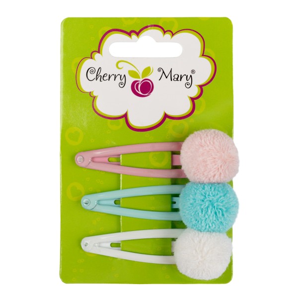 Заколки для волос, 3 шт., с декоративными элементами. Небольшие заколки клик-клак длиной 5,5 см идеально подходят для детских причесок, трендовые нежные цвета декоративных элементов - помпонов помогут в создании милых образов для маленькой модницы. Аксессуары отлично подходят для ежедневного использования. ТМ Cherry Mary - это яркая разнообразная детская бижутерия и аксессуары для волос на любой вкус: заколки, резинки, ободки, косички, бусы, браслеты и многое другое. Арт. Z6204
