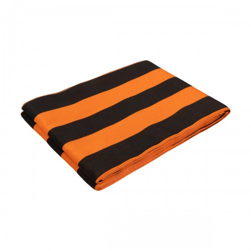 Лента "Георгиевская" Георгиевская лента - главный атрибут 9 мая, черный и оранжевый цвет- означают "дым и пламень", олицетворяют подвиги русских воинов на полях сражений. Ленту применяют в декоре, при оформлении наград, открыток. Ширина: 140 мм Состав: 100\% полиэфир Метраж - 1.5 метра Кол-во - 5 шт.