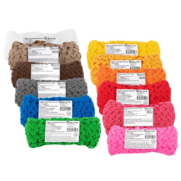 BLITZ" 3884Г17 рис 9861 лента декоративная "ЗИГ-ЗАГ" 9 мм 20 м бежевый