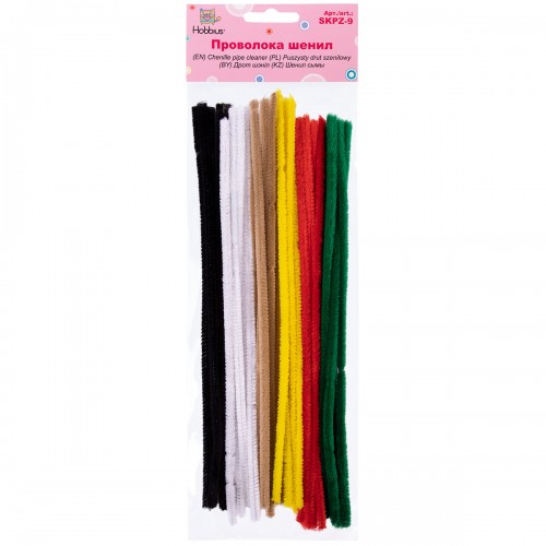 Мягкая пушистая проволока шенил торговой марки "Hobbius" арт.SKPZ-9 примет любую форму, какую только подскажет детская фантазия: забавной зверушки или человечка, буквы или цифры, браслета или ободка, персонажа пальчикового театра или цветка для украшения подарка. Проволока шенил диаметр 0.9см длина 30 см количество 30 шт
