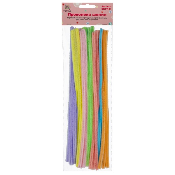 Мягкая пушистая проволока шенил ТМ "Hobbius" арт.SKPX-9 примет любую форму, какую только подскажет детская фантазия: забавной зверушки или человечка, буквы или цифры, браслета или ободка, персонажа пальчикового театра или цветка для украшения подарка. Диаметр: 0.9 см Длина: 30 см Количество: 30 шт
