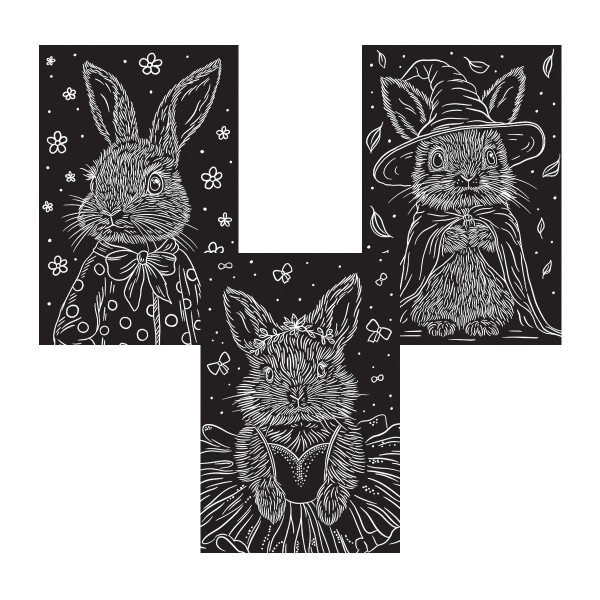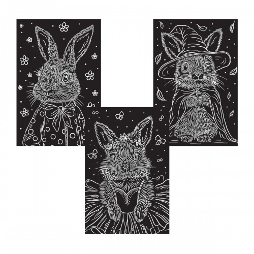 Hobbius" GHPM-23 Набор для творчества "Гравюра мини" 10 x 15 см 1 х 3 шт Зайчата" (серебро)