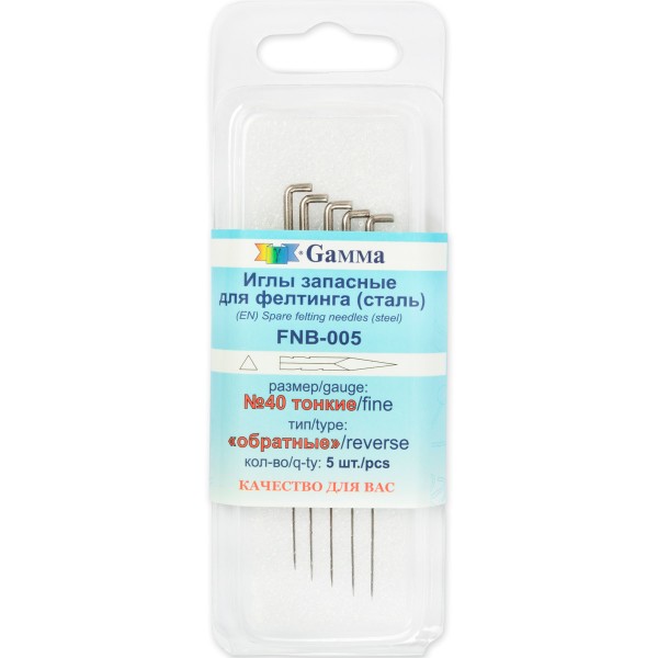 Gamma" FNB-005 Иглы для валяния (фелтинга) запасные в пластиковой упаковке с европодвесом 5 шт №32 грубые (обратные)