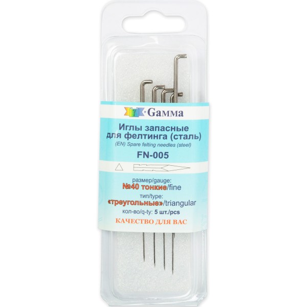 Gamma" FN-005 Иглы для валяния (фелтинга) запасные в пластиковой упаковке с европодвесом 5 шт №25 грубые, толстые
