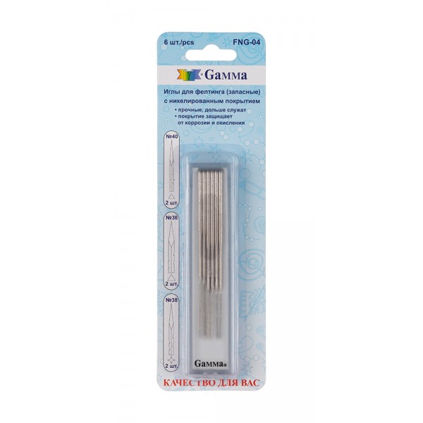 Gamma" FNG-04 Иглы для валяния (фелтинга) запасные в блистере 6 шт №40 тонкие - 2 шт., №38 средние - 2 шт., №36 толстые - 2 шт.