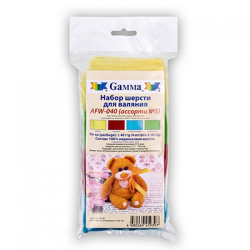 Gamma" AFW-040 набор шерсти для валяния 100\% мериносовая шерсть 4 х 10 г ассорти № 5